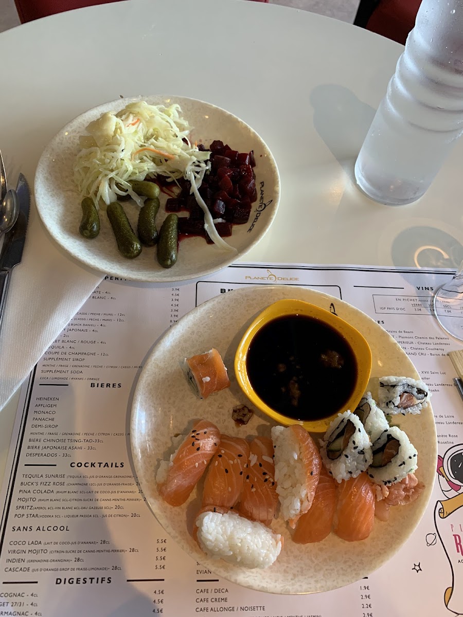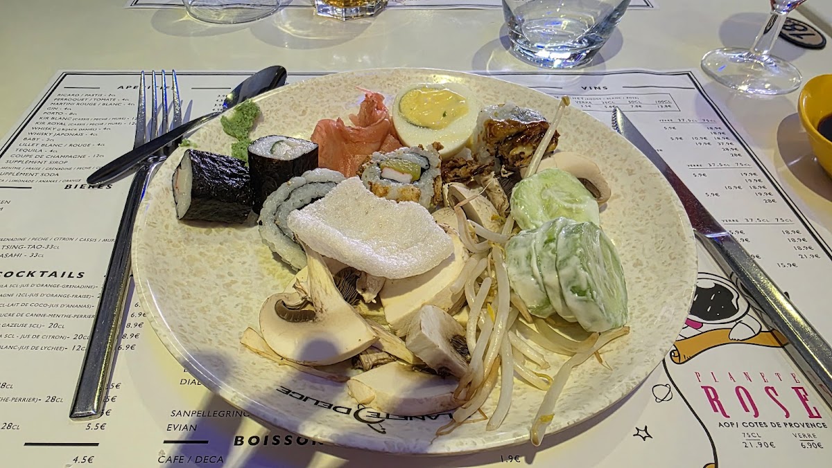 Highlights include well-presented sushi, flavorful Cantonese rice, and indulgent desserts like forêt noire. The warm, attentive service and added touches such as a steampunk-styled restroom and a children’s play area enhance the overall dining experience, making Planète Délice a recommended stop for those seeking abundance, warmth, and an offbeat atmosphere.